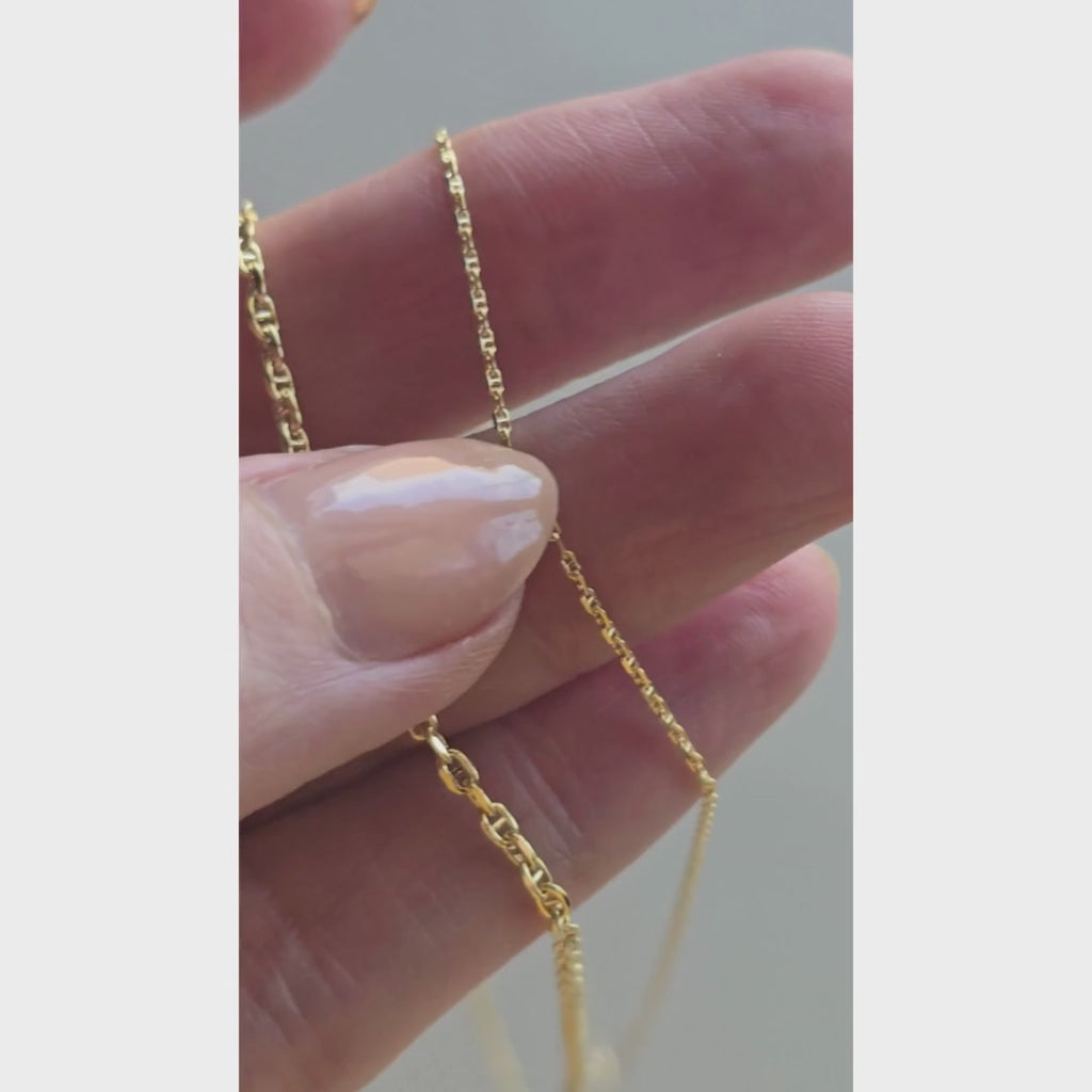 Say hello to your new favorite diamond cut anchor chain. She spaaaarkles and feels like liquid silk on your skin. She has vintage dainty vibes but boasts and very sturdy framework. Win win!